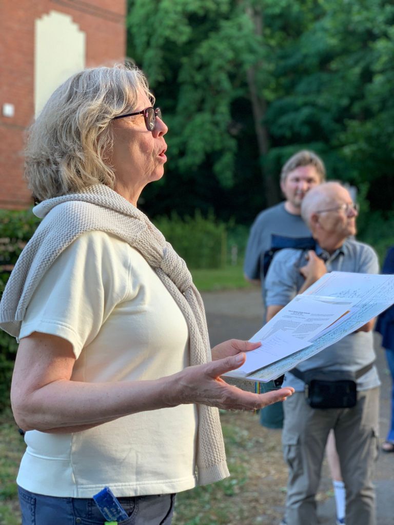 Die Führung fand auf dem eindrucksvollen Gelände mit altem Baumbestand statt – ein Ort von bedrückender Vergangenheit und stiller Schönheit.